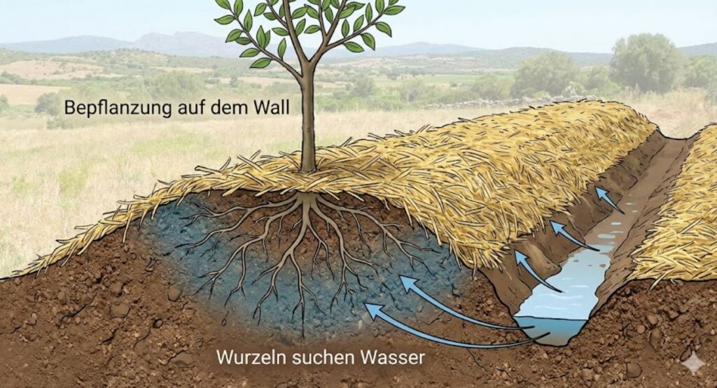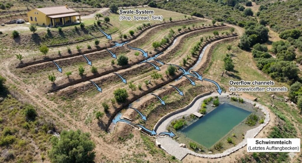 Das ist das Herzstück der gesamten Wasserstrategie auf eurem sardischen Grundstück. Wenn ihr das richtig macht, verändert sich alles: Das Land wird grün, auch wenn es monatelang nicht regnet.